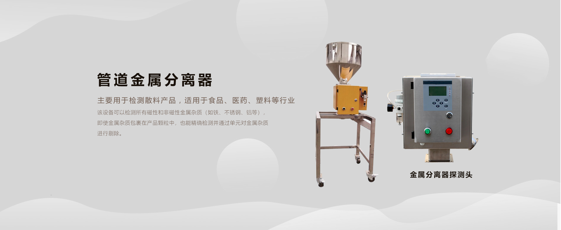 金属分离器主要用于检测散料产品,适用于食品、医药、塑料等行业。该设备可以检测所有磁性和非磁性金属杂质(如铁、不锈钢、铝等),即使金属杂质包裹在产品颗粒中,也能精确检测并通过单元对金属杂质进行剔除。